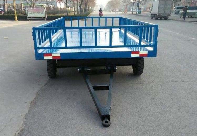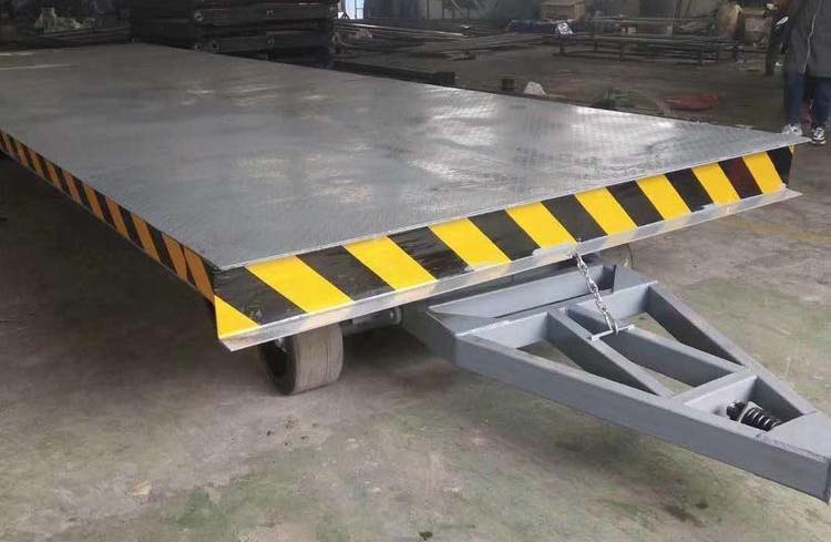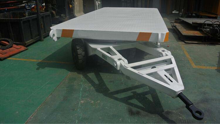 平板拖車本身無動力,可用叉車、牽引車牽引,適用于工廠、碼頭、港口、倉庫等場區內大宗貨物周轉運輸。