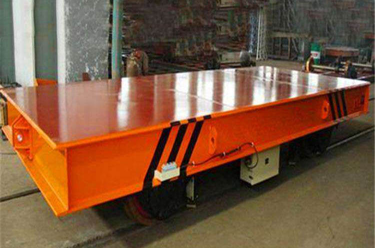 電動平車是電纜卷筒供電的電動平車,在電動平車上設有電纜卷筒,其電纜卷筒為磁耦合式電纜卷筒,確保電纜無受力且均勻的排線和放線(超過50m有一套自動排線器),電纜卷筒380V供電給平車上冶金專用電機,電機通過減速機拖動平車平穩運行。平車運行時電纜卷筒自動將電纜卷起或放出,受卷線筒供電長度的影響,一般運行距離小于200m。