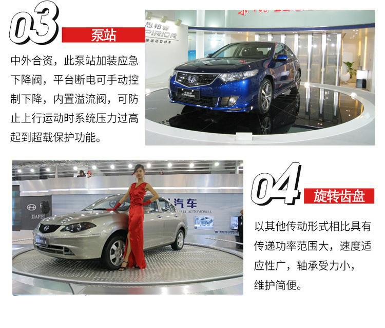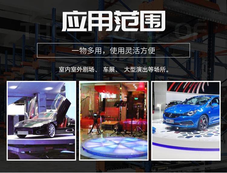 汽車旋轉舞臺是一種圓形舞臺,繞中心軸360度旋轉的舞臺。旋轉舞臺適用于會堂、影劇院、多功能廳、演播廳、文化體育場館等的設備,伸縮舞臺采用有效的導向系統,使旋轉臺在平移過程中與固定臺的間隙小,運行平穩、速度無級變化、同步裝置、電動采用低速大扭距驅動裝置。
